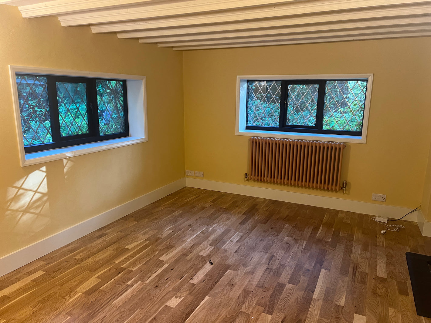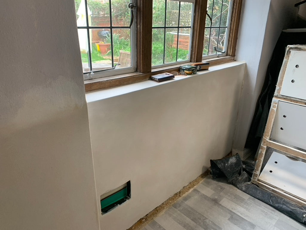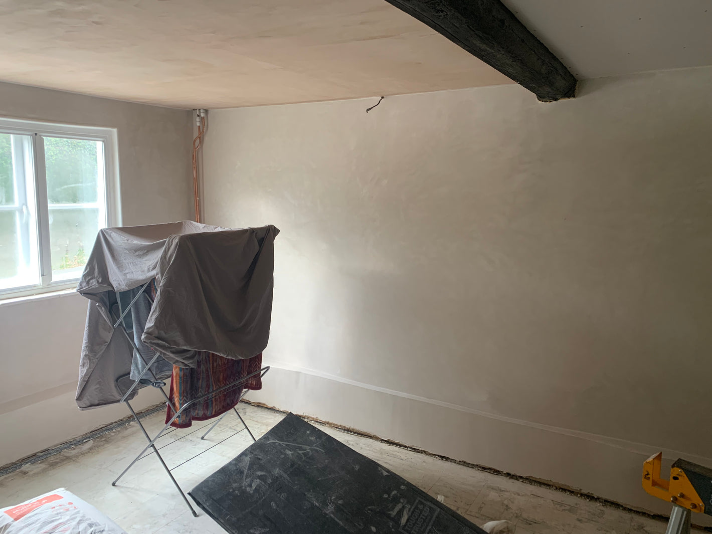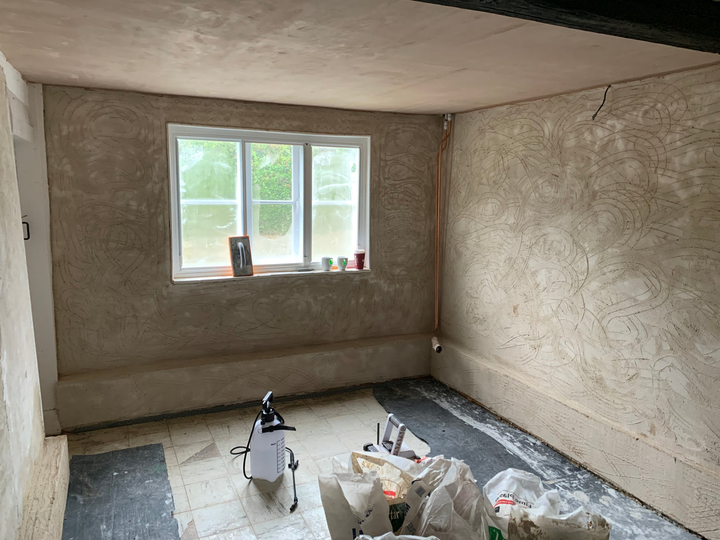 Lime plastering painted using Beeck paints on completion of our recent damp project on a cottage in East Sussex. The suspended floor was also removed and reinstated due to subfloor ventilation issues.