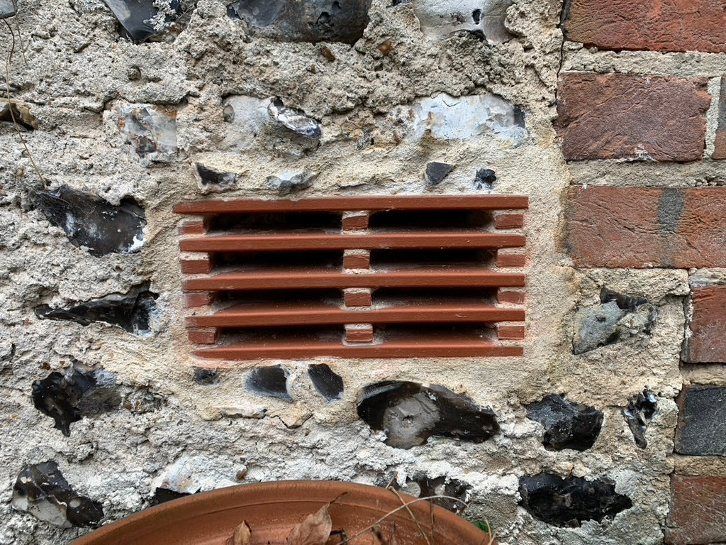 Creasing tiles used to match the vents within the local area. A mineral wool or similar filter is fitted behind the tiles from inside to prevent draughts and to prevent bugs entering.