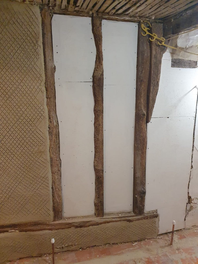 Reinstating a new lath & plaster wall on completion of removing the damp plaster.